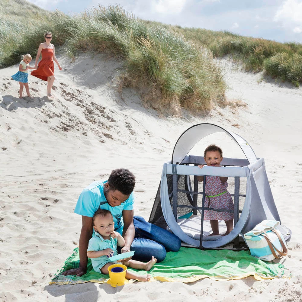 Staying over at grandma or grandad, visiting friends, on the beach or simply at home in the garden: you can take the travel cot everywhere you go for those necessary naps. And you don’t have to lose sight of your child thanks to the see-through sides.
