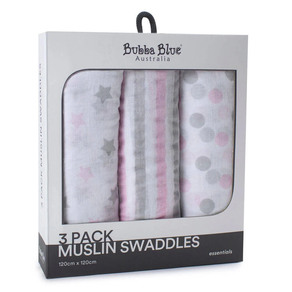 Essential muslin wrap from the Bubba Blue Everyday Essentials collection. Perfect for bedtime, swaddling and outings, and Essential item for any Nursery.