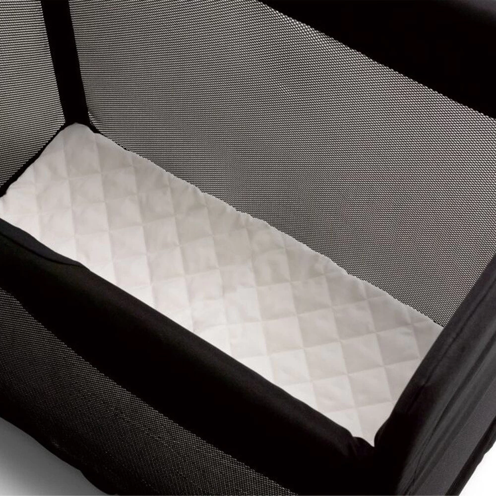 This portacot comes with a firm and comfortable mattress, with enough padding for your little one to sleep safely and comfortably. The firm mattress is especially essential if you use it more regularly at home, and not only during your family trips. The all-around mesh panels will ensure optimal airflow, always providing a safe and peaceful sleep.