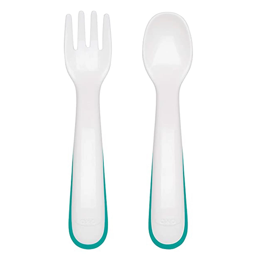 The OXO Tot Plastic Fork & Spoon Set is the perfect starter set for little eaters. The rounded handles are designed with tots’ hands in mind, making it easy for them to grip while taking their first solo bites.