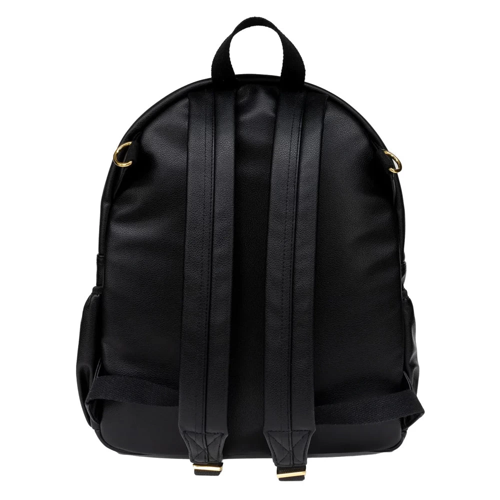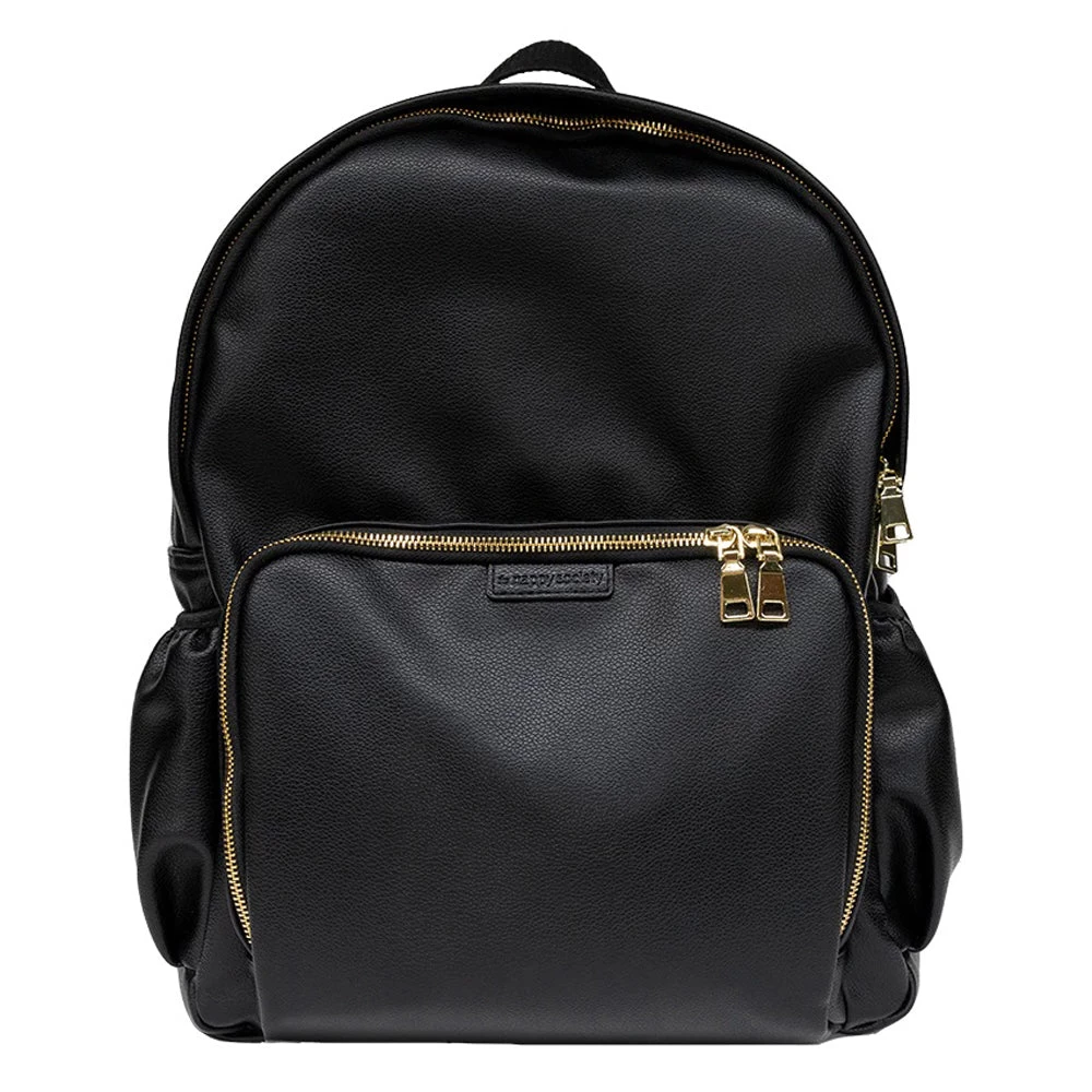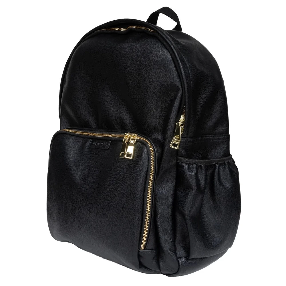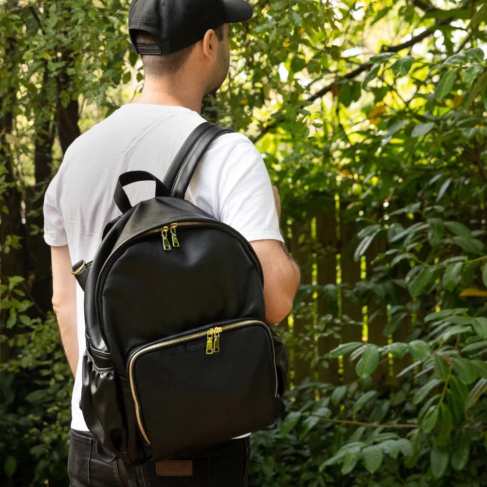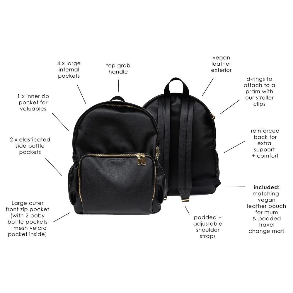 Made from premium black vegan leather, with a beige interior (designed for better visibility) the super spacious, yet sleek design is packed with functional features and ticks all the essential baby bag boxes (plus many more)!