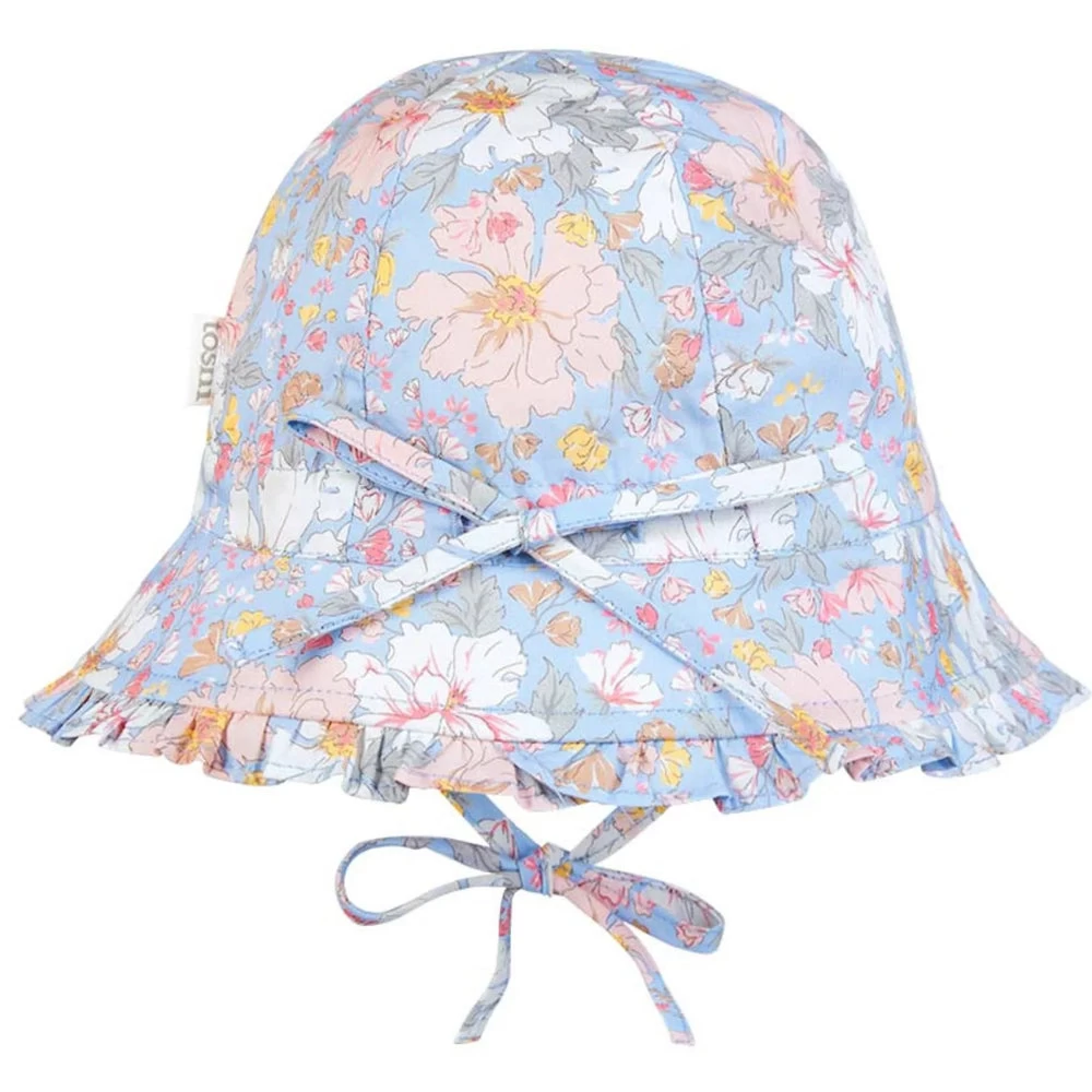 Toshi Bell Hat Yasmin Dusk features an original and exclusive Toshi print design, a collection of florals presented in a calming blue hue.
