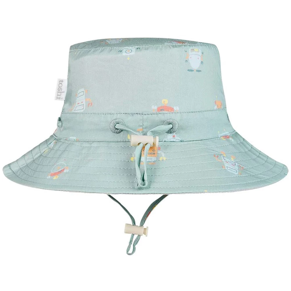 Sunhat Joyride Robots features an original and exclusive Toshi print design, an array of robots is presented in a soft sage hue.