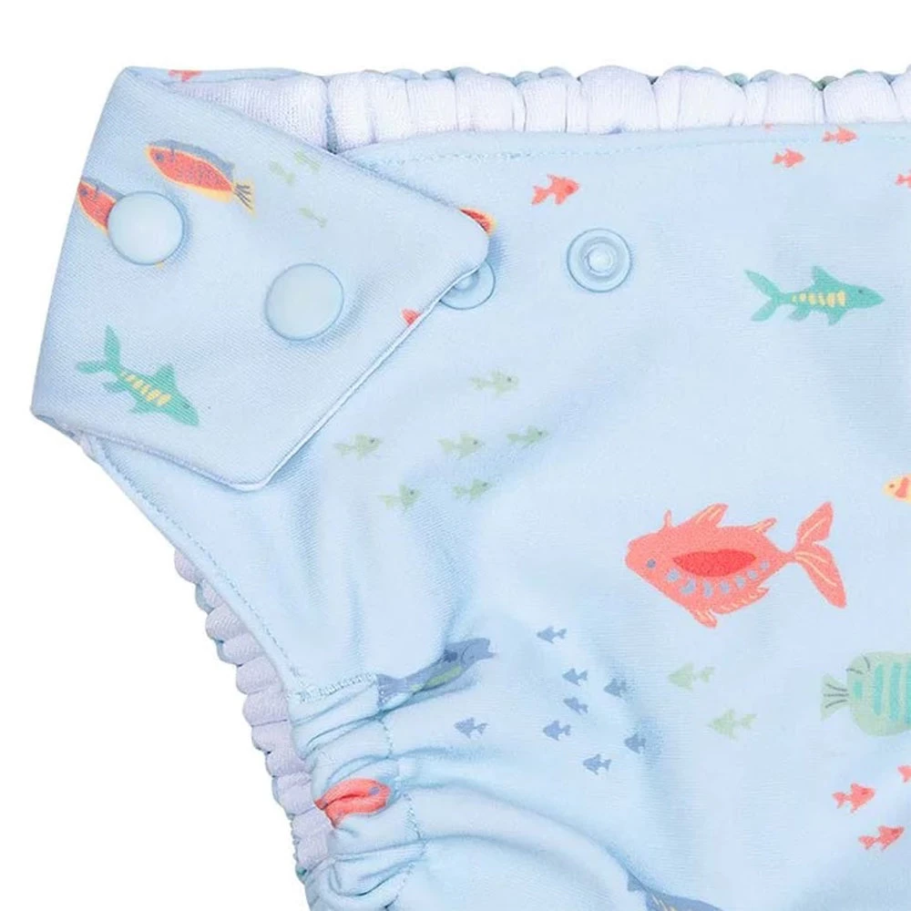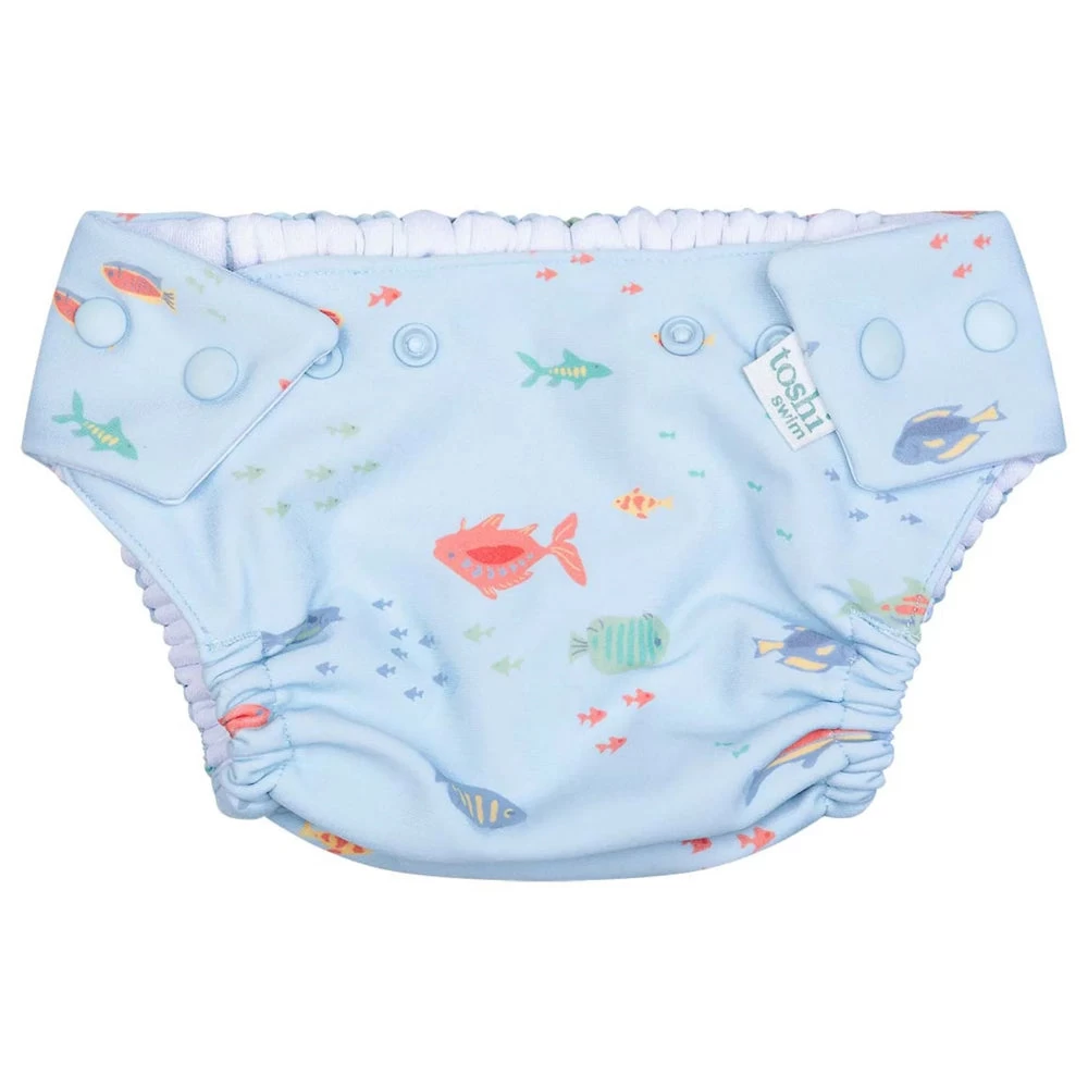Toshi Swim Baby Nappy Classic Reef features an original and exclusive Toshi print design, with colourful underwater friends presented in a baby blue hue.