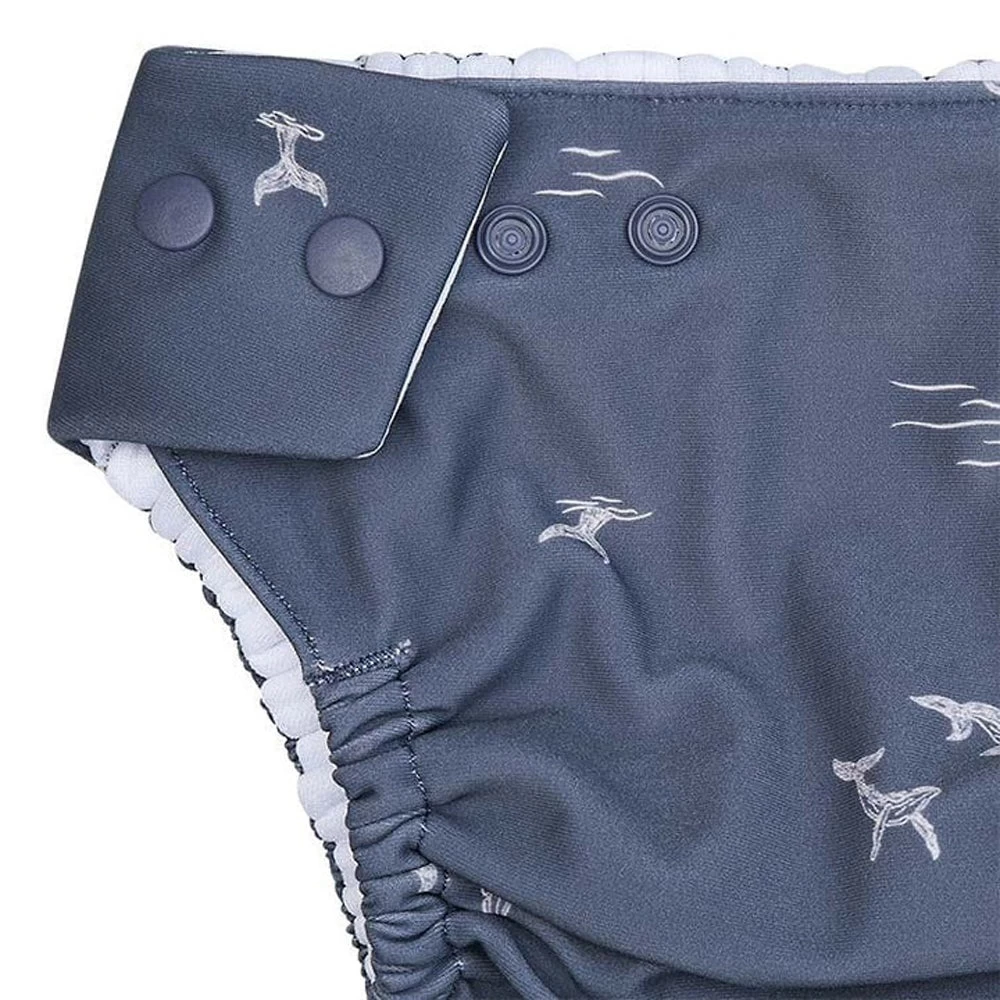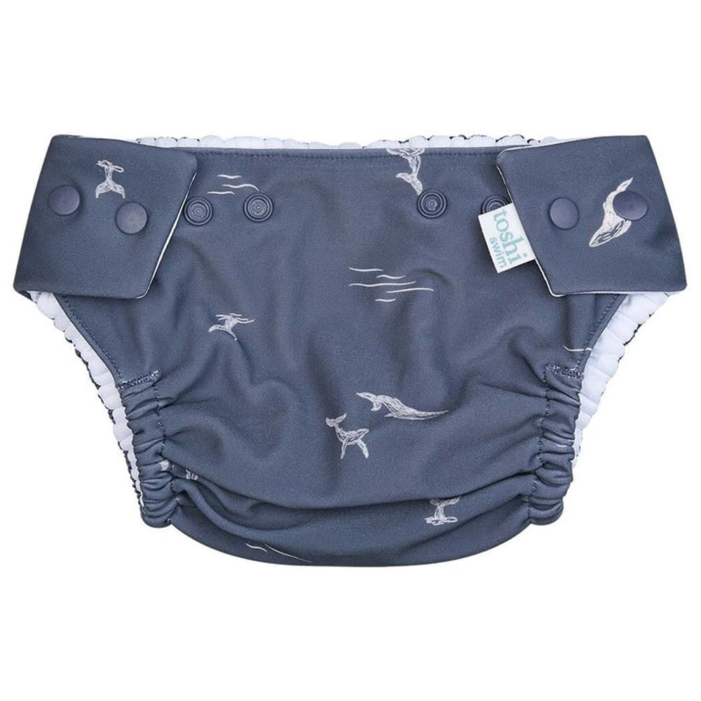 Toshi Swim Baby Nappy Classic Whales features an original and exclusive Toshi print design, a school of whales presented in a classic deep navy blue hue.