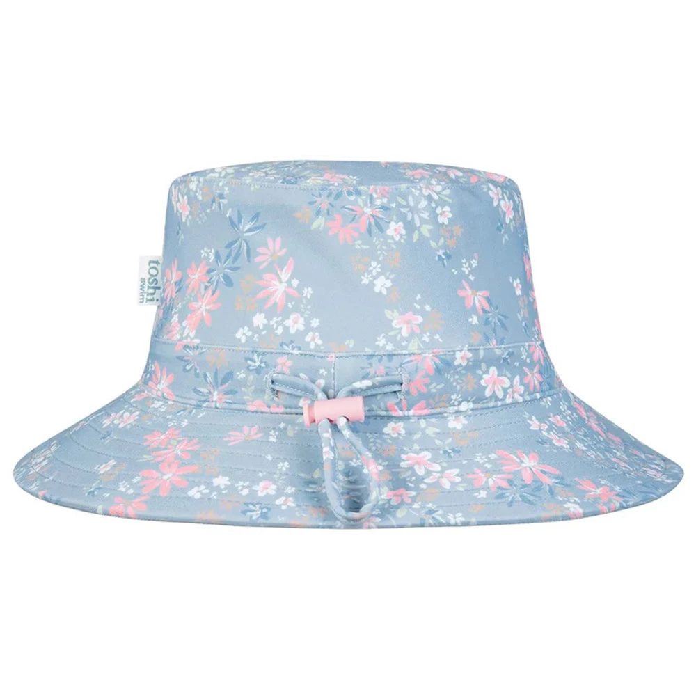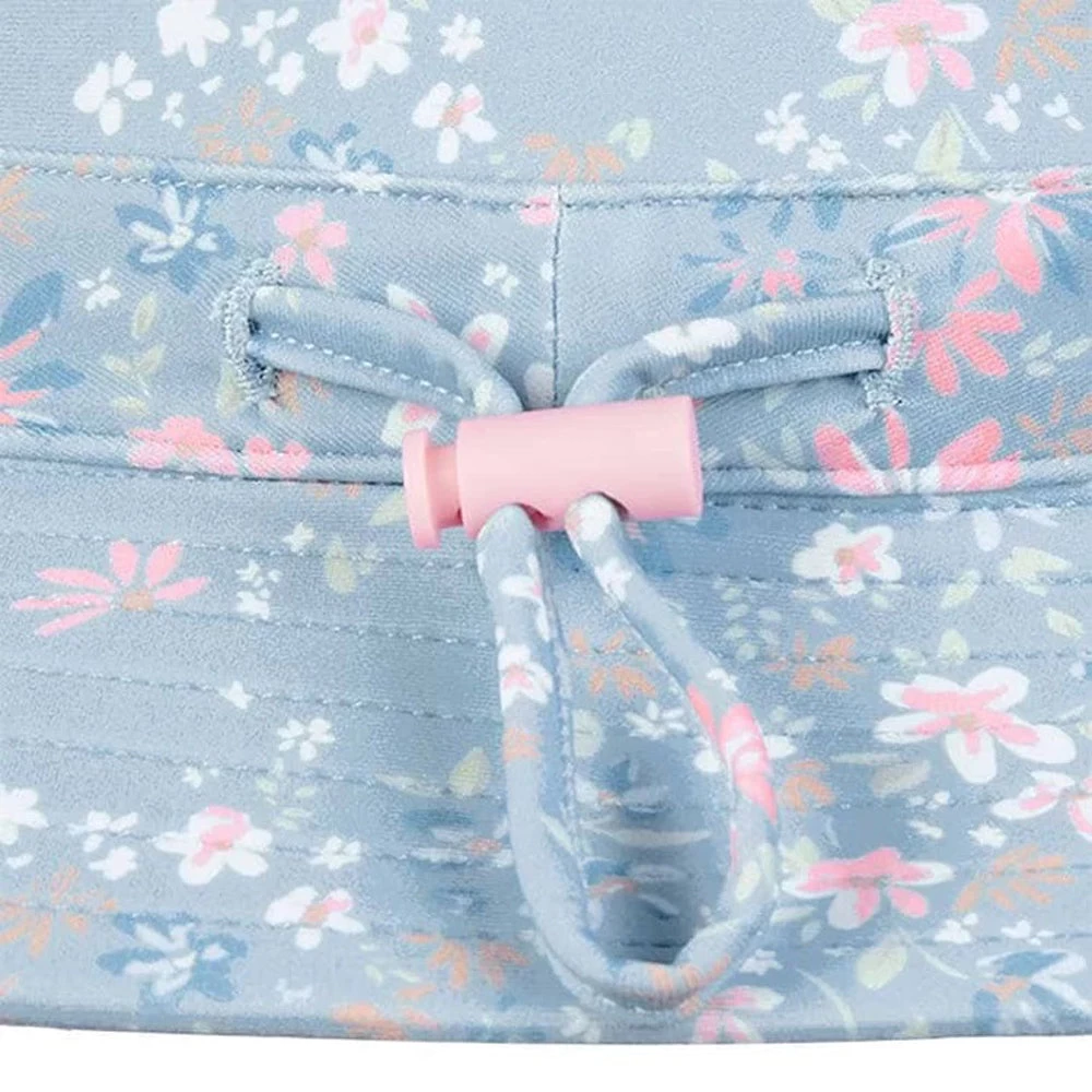 Toshi Swim Baby Sunhat Classic Athena Dusk features an original and exclusive Toshi print design, a collection of sweet flowers presented in a cool blue grey hue.