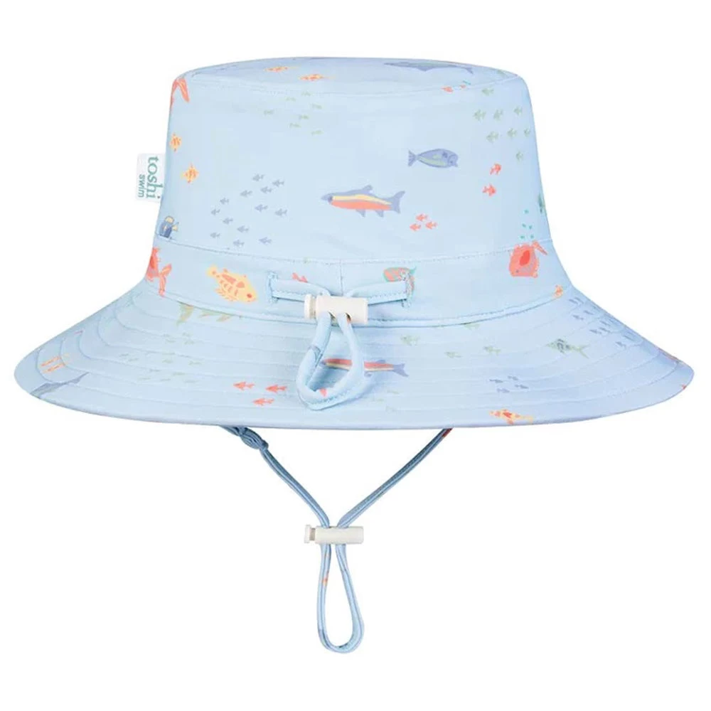 Toshi Swim Baby Sunhat Classic Reef features an original and exclusive Toshi print design, with colourful underwater friends presented in a baby blue hue.