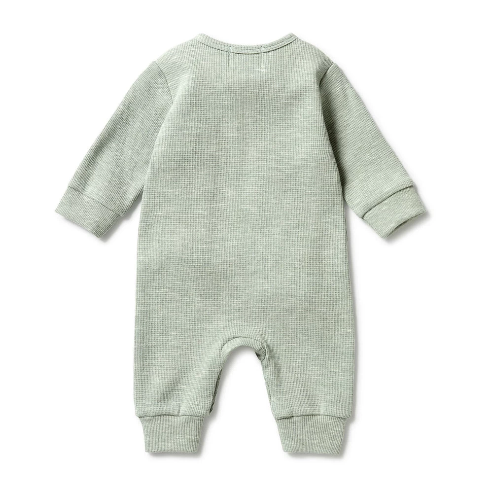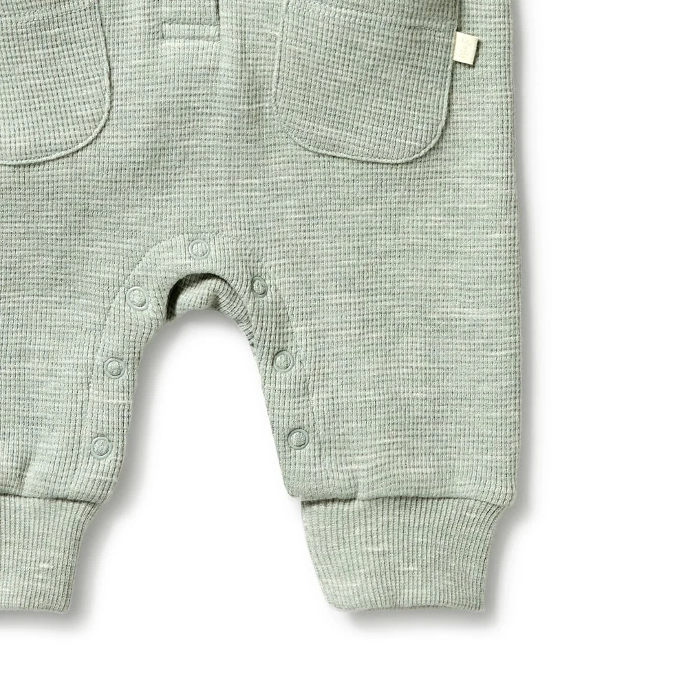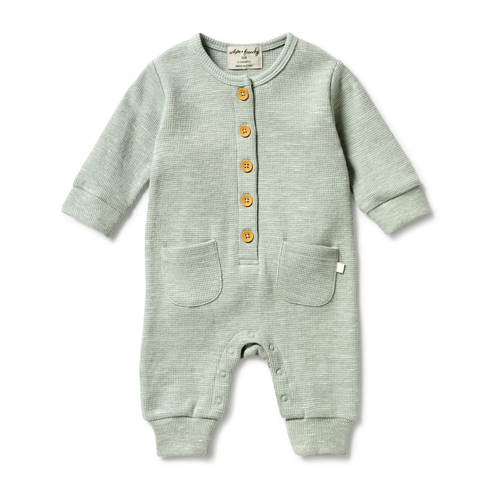 Keep your little treasure warm, comfortable and stylish in this relaxed fitting 100% organic cotton slouch grow suit by Wilson + Frenchy. Featuring a Henley neckline for easy dressing and a snap inleg opening for quick nappy changes.